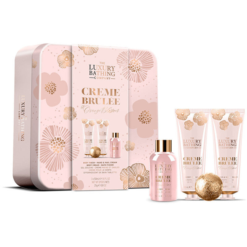 „Luxury Bathing Company“ kūno priežiūros dovanų rinkinys skardinėje (Creme Brulee, apelsinų žiedų ir vanilės)